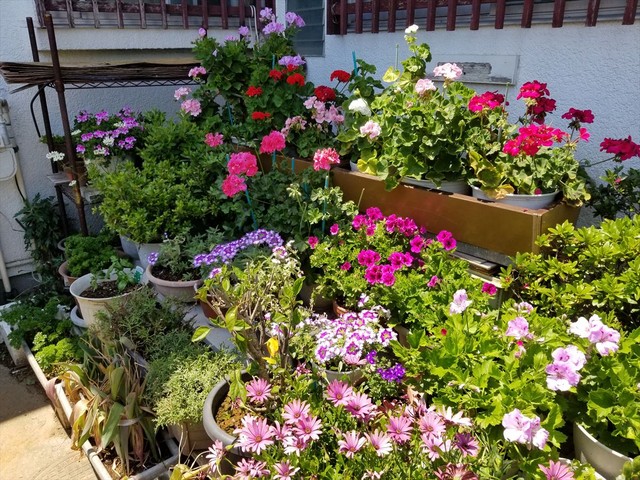 夏の色になった我が家の花壇の装い