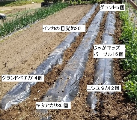 5種類のジャガイモを植え付けた。