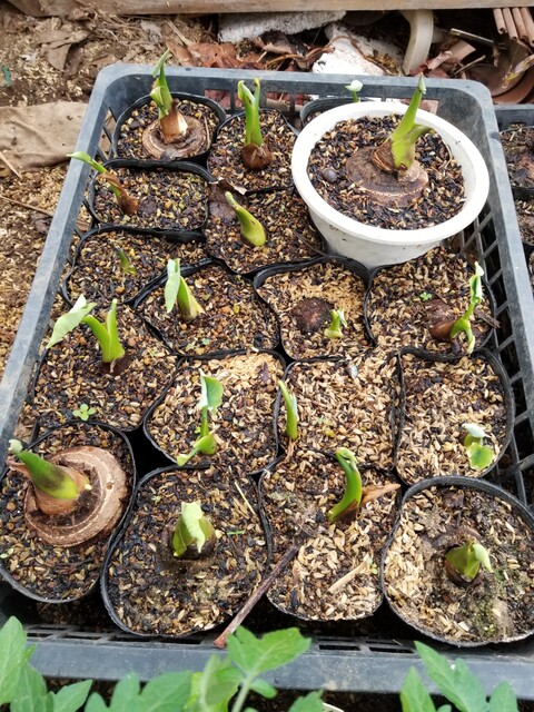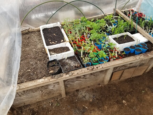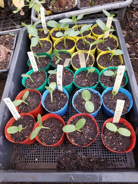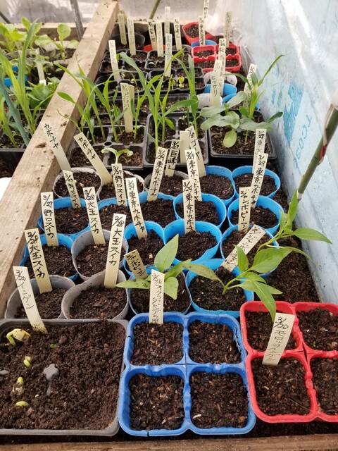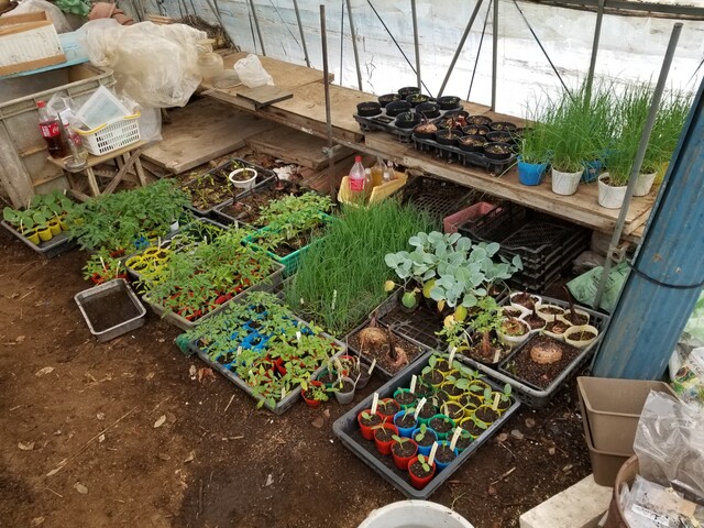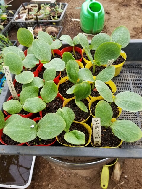 2020年03月30日 温床とビニールハウス内の苗の状況 温床は、すでにいっぱいの状態である。ある程度大きくなった苗や定植時期が遅いものは、温床から出して定植時期まで常温育苗をしてある。まだ、ウリ科で発芽させるために温度が必要なので、8分の1の場所を切り返しを行った。下の画像の一番左側が切り返しの終わった場所である。温床の右側は満杯で置く場所が無い。すでに常温育苗に切り替えた幼苗である。下の画像は、催芽処理で発根させた種をポットに埋め込んで発芽させている。東京カボチャや大玉スイカ類である。画像一番手前には、インゲンが発芽し始めている。必要な分だけポット苗に植え替えたものである。 パンナメロン、大玉スイカ、ハグラウリ、ラリーノF2の幼苗である。下の画像は、カボチャの苗2品種である。品種は、くじゅうくりEXとほっこり133である。下の画像は、土垂である。根と芽が出ていていつでも定植OKであるが、まだ気温が低いので4月に入ってから植え付けようと思っている。下の画像は、セレベスである。こちらも定植時期を待っている。 本日も、ぽちっと応援よろしくお願いします。 「踏み込み式温床」カテゴリの最新記事 前のページ コメント コメントフォーム 名前 コメント 記事の評価 リセット リセット 顔 星 情報を記憶 コメントを投稿する