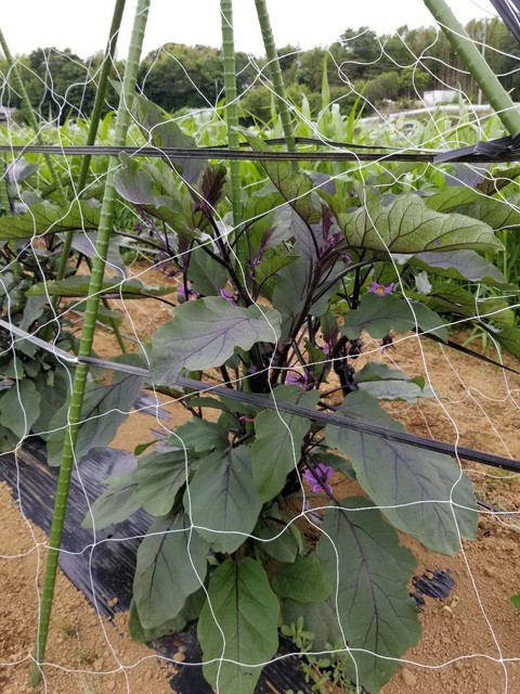 私は勝手に『ナスの三角ネット支立て栽培』と名付けて、真似している。