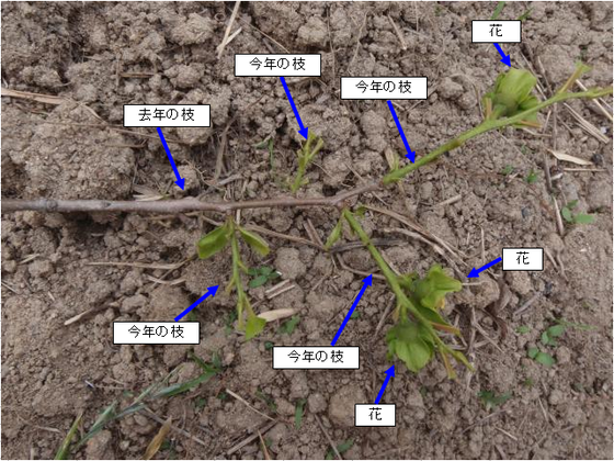 下の画像は4本の新技全部に花が咲いている。(5月頃の画像である。)