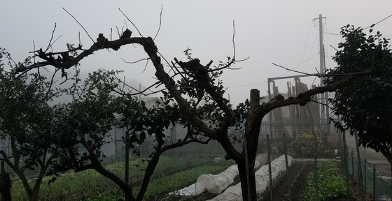 畑には 大きな柿の木があって 一応 ハタケビトの共有物らしいんですが 隣の畑のおじさん側にあるので いつもおじさんに収穫してもらってます。渋柿ですが 干し柿にすると絶品です。