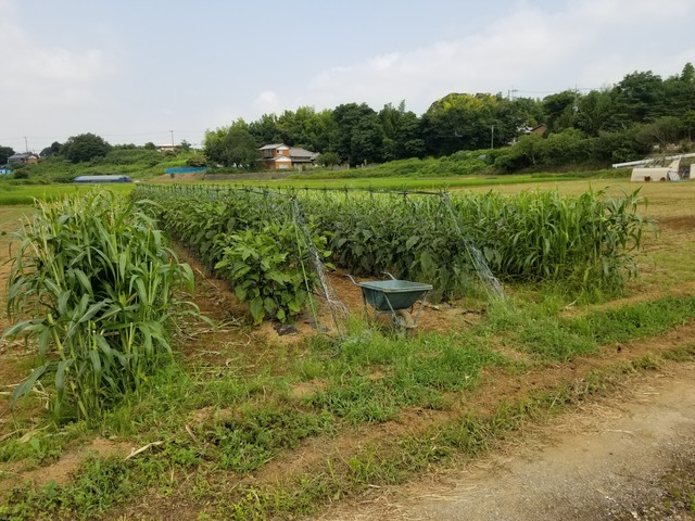 休耕田にナスを作ったプロ農家の畑がある。