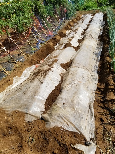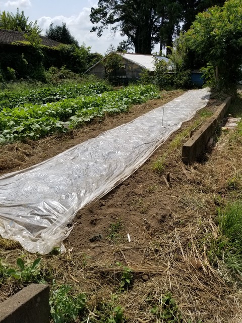 温度上昇を考えると太陽熱消毒してる畝を農ポリトンネルで覆ったらさらに温度上がりそうな気がします。