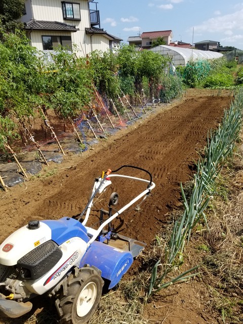 今回は、耕耘機で耕してから高畝を作り、より多くの土壌を太陽熱消毒しようと考えた。