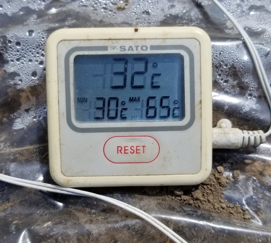 さらに、地下30㎝の温度を測ったら32℃であった。日中の温度は34℃ぐらいであった。