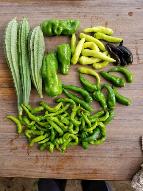 今日の収穫 2019年09月26日 06:00 昨朝の収穫である。シシトウは、まだたくさん生っているが、ピーマンは、そろそろ終りに近付いている。トカドへチマは、まだ何本か収穫出来そうだ。ナスは第一弾の最後の収穫である。まだ第2弾が残っている。カルガナスと賀茂なす本日もランキングに、ポチお願いします。(*^。^*) 「野菜の収穫 画像」カテゴリの最新記事 < 前の記事次の記事 > コメント コメントフォーム 名前 コメント 記事の評価 リセット リセット 顔 星 情報を記憶 コメントを投稿する