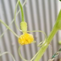 👇は、アップルゴーヤである。種は、furuutuさんから2年にわたって頂いている。去年は、何回やっても発芽できなかった。今年も3回に分けて、種を蒔いた。3回目に、3芽出た。しかし、まもなく1芽枯れた。定植できたのは2株だったが、途中で1株の蔓の1本が枯れた。その後、下の ...