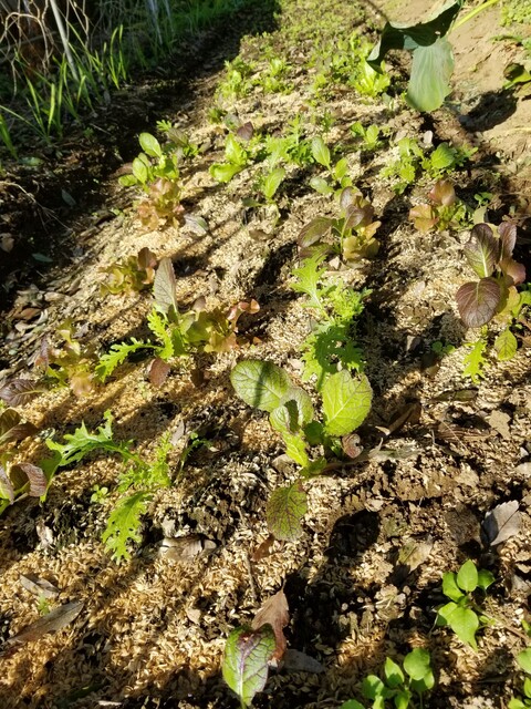ほうれん草のph調整に籾殻くん炭を使った。