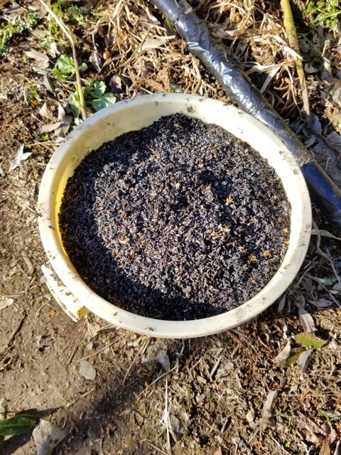 水をたっぷりかけた後、防寒のため燻炭を穴に入れた。
