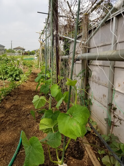 カボチャの空中栽培 2020年05月14日 06:00 今年は、カボチャの空中栽培の場所を変えた。日当たりの良い場所で、昨年ゴーヤとヘチマを作った棚である。画像は、現在の苗の生育状況である。元気に育っている。下の画像右側は杉林で、秘密基地の方角である。南側に10株植えた。 まだ天気が安定しないので、行灯栽培を作けていたが、急に暑くなったので行灯を外した。また、棚も昨年度よりがっしりと補強した。 きゅうりネットも新調した。まだ天井は新調していない。 西側の上には、樫の木の大木が倒れて何もない。 しかし、東側の上には大木が覆い被っている。時間的に一部日陰となる。 本日も、ぽちっと応援よろしくお願いします。 「果菜類の栽培コーナー」カテゴリの最新記事 < 前の記事次の記事 > コメント コメント一覧 (6) 1. 甘姫です~ 2020年05月14日 07:14 のじさん、お早うございます~♪ カボチャの空中栽培面白そうですね~沢山南瓜がぶら下がる光景想像すると楽しくなりますね~ 多収穫できますように!! 0 nojisan1 がしました 4. のじさん 2020年05月14日 09:59 >>1、甘姫さん、こんにちは。 カボチャの蔓は、棚だけに止まらないで、杉林のほうに逃げて行くでしょう。それもねらいです。 0 nojisan1 がしました 2. Heyモー 2020年05月14日 07:56 おはようございます! のじさんさん Heyモーです おお!! かぼちゃの空中栽培ですか これは楽しみですねえ 10株もあると 実が付いたとを想像すると かなり迫力がありそうです 支柱もしっかり補強なさって 準部万端 デカイかぼちゃが鈴なりになっても 十分持ちこたえますね 0 nojisan1 がしました 5. のじさん 2020年05月14日 10:02 >>2、Heyモーさん、こんにちは。 カボチャは生っても美味しいのは、1株に1個か2個だと思います。蔓が枝分かれしてたくさん生りますが、裏生りだと甘く無いです。目標10個です。 0 nojisan1 がしました 3. まる八の家庭菜園 2020年05月14日 08:50 おはようございます。 カボチャの空中栽培は、興味深く拝見しています。 カボチャ🎃は、スイカ、キュウリの台木(新土佐カボチャ)を栽培しましたが、1株で10m四方を覆い尽くす勢力に驚きました。ミカン畑の伊予柑を、覆い尽くして救出した経験が有ります。 0 nojisan1 がしました 6. のじさん 2020年05月14日 10:06 >>3、まる八さん、こんにちは。 おっしゃる通りです。 女化にある畑は40坪ですが、20株ぐらい植えて覆い尽くしますが、収穫は20個ぐらいです。 途中で雑草に打ち負かされるからです。 こちらは10株で10個の収穫をねらいます。(*^o^*)(^o^)/ 0 nojisan1 がしました コメントフォーム 名前 コメント 記事の評価 リセット リセット 顔 星 情報を記憶 コメントを投稿する