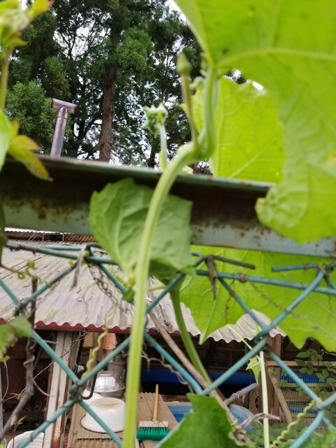 ヘチマは毎年秘密基地の周りのフェンスに絡ませている。