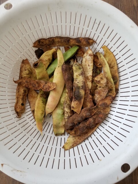 7月8日採種のものは、莢のやや緑のものも収穫した。前回のは、中に虫が入っているものがあった。