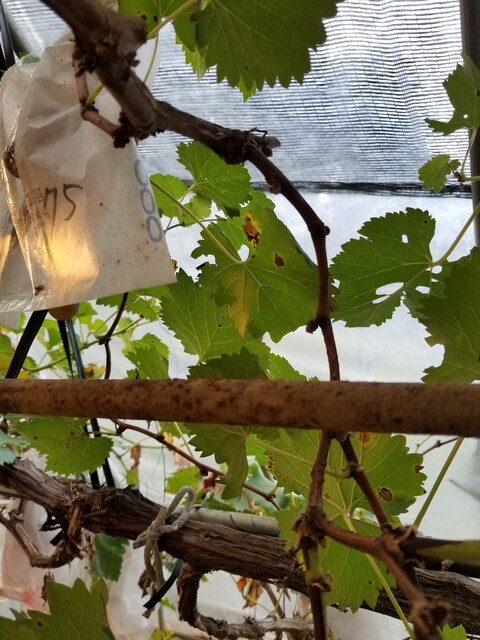 その結果、粒は育ったが葉の数が8枚ぐらいしか育たず、十分な養分を実に蓄えることが出来ていない。ぶどうの粒は、葉で作られた糖分が蓄えらることで色が黒くなって甘くなって行く。3房では無く、1房にすれば、結果は違っていたかも知れない。