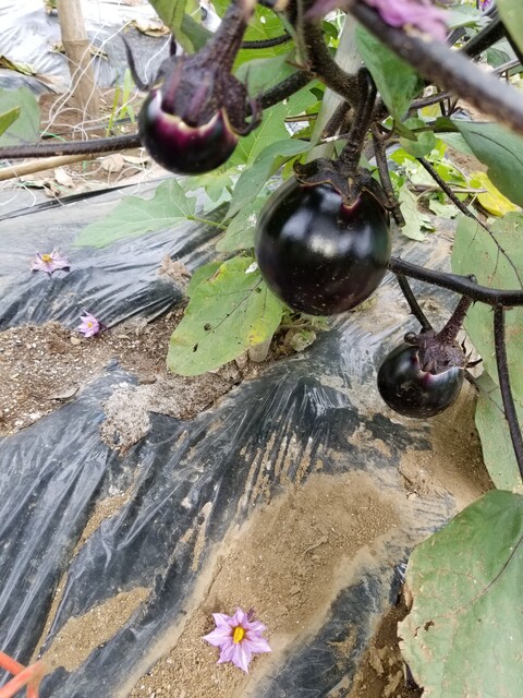 👇は、固定種の賀茂なすである。京野菜である。我が家では、食べなれていないので人気が無いが、種を繫いでいくために1株だけ作った。