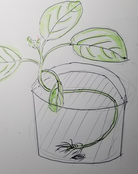 かなり長く徒長していたものを、底の方からぐるっと回して、首を出させたわけである。