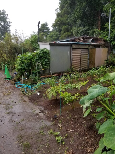 👇の畑は、三方を建物と山に囲まれていて、日照は最悪だが、台風等の大風には滅法強い。
