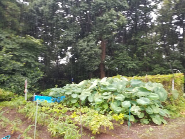 👇は、今年初めて作っているこんにゃくである。葉が大きくて大風には弱そうだ。