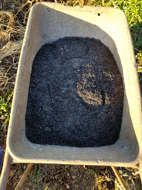 燻炭マルチは黒いから太陽光で保温されそうですね。