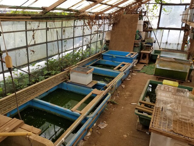 昔は、らんちゅうを専門に育てていたが、らんちゅうの会を解散してしまったので、メダカハウスにしてしまった。