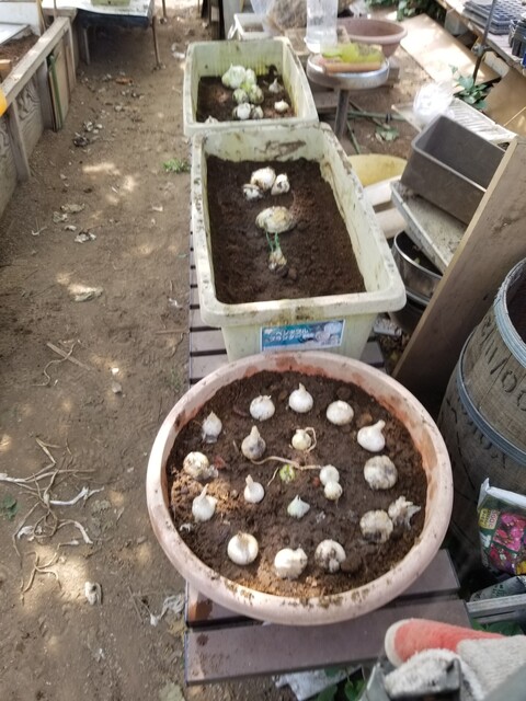 👇は、去年と同じようにプランターに移し替えて、保管してそのまま芽出しをする計画に切り替えた。