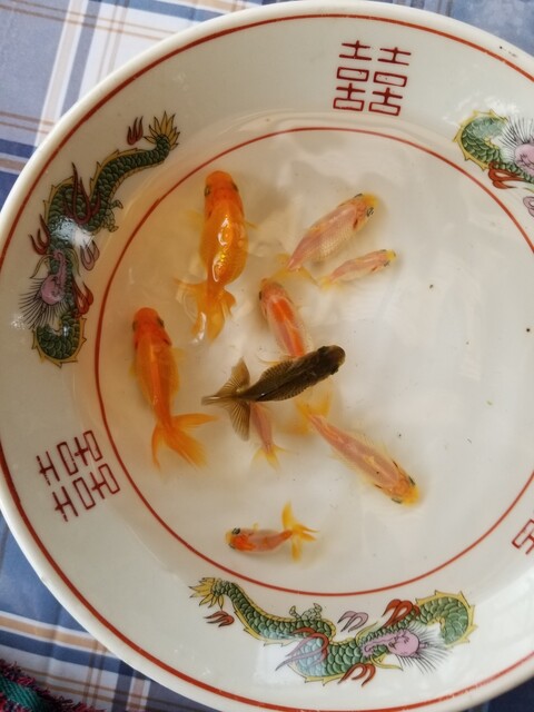 それで、雄しかいなかったらんちゅうと丈夫なオランダ獅子頭を掛け合わせてみた。