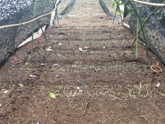 👇は、日除けをして篠原早生白玉葱の育苗をしている画像である。