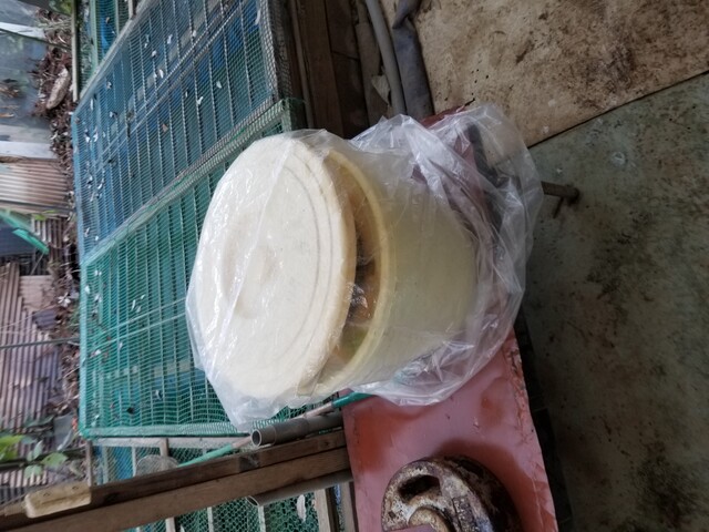 蓋をして、全体にビニールを掛けて、仕込みの終了である。