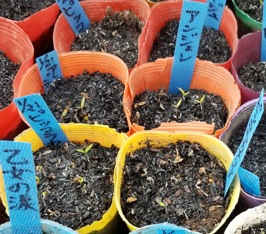 👇は、Aブロックの様子である。ポットでは発根した種を植え付け発芽を促している。
