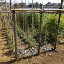 👇は、トマトの棚である。ざっと数えてアロイトマトが50株、ミニトマトを25株作付けている。そんなに作ってどうするのか。しかしながら、大玉トマトの露地栽培は意外と難しい。肥料をやりすぎても、病気に罹ってしまう確率が高い。昨年から取り組んでいるのは、寝かせ植えと ...