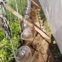 👇は、改良ミニハウスである。もともとニンニクが植えたあった所に、トウモロコシ栽培で、ハクビシン対策でキュウリパイプを利用して、ネットハウスにしていたものを暮れに移動したものである。キュウリ栽培を、中央の空いた所で作付けるために棚を作った。通路に溝を掘って ...